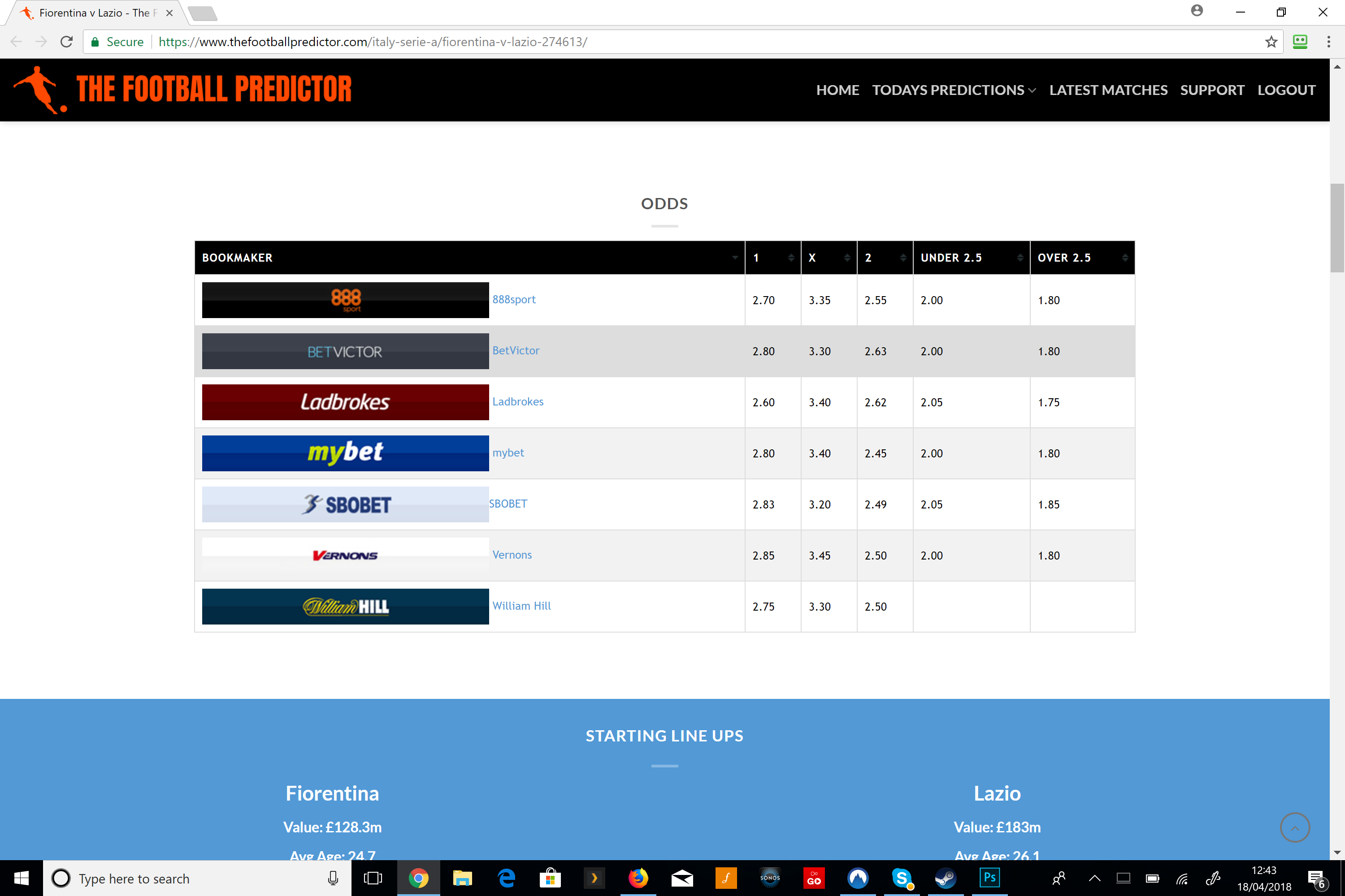 Compare Odds from different Bookmakers for selected matches ensuring that you can maximise your winning potential.