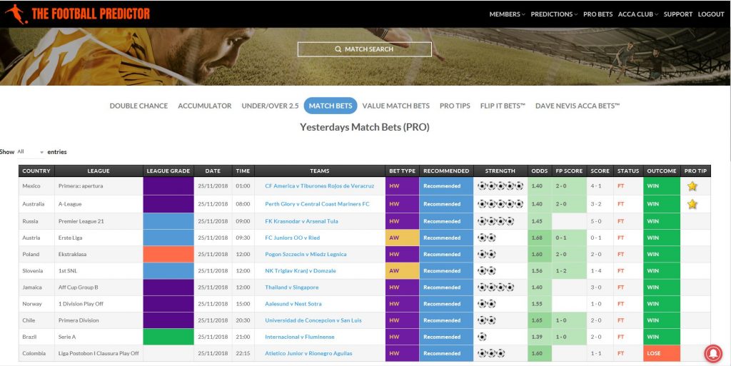 The Football Predictor works 24/7 to bring you predictions and stats for carefully selected matches from around the Globe.