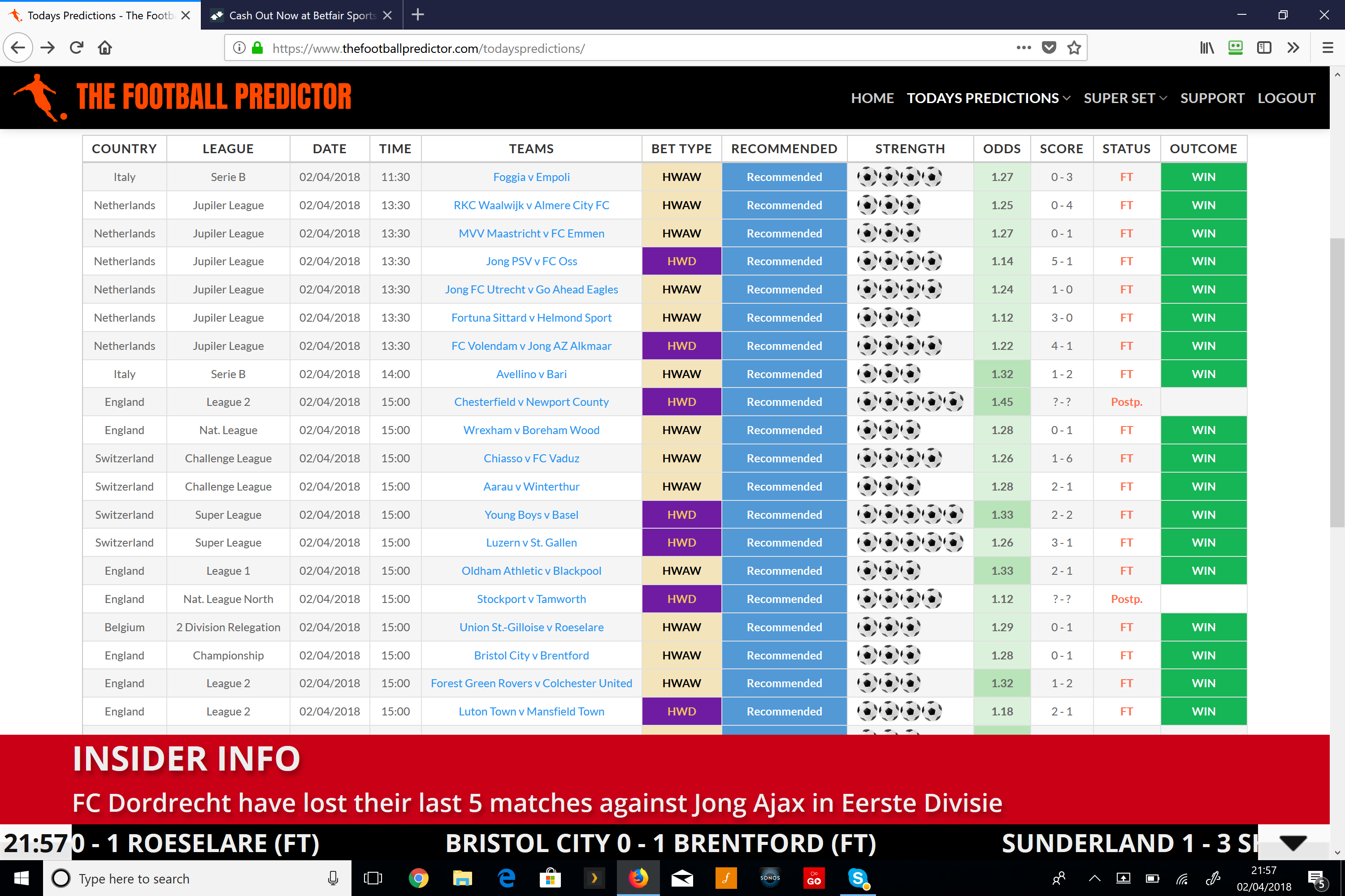 The Football Predictor works 24/7 to bring you predictions and stats for carefully selected matches from around the Globe.