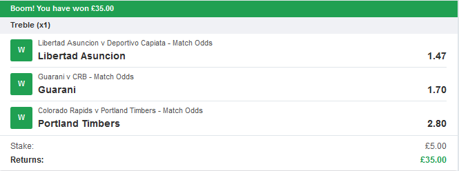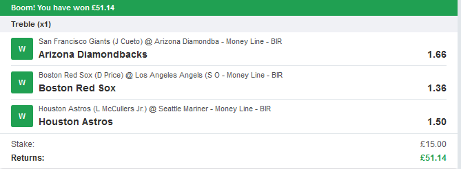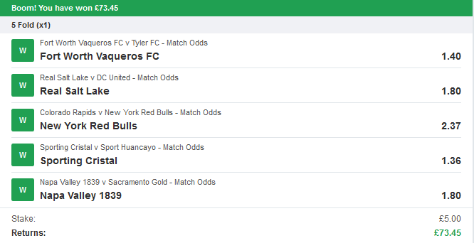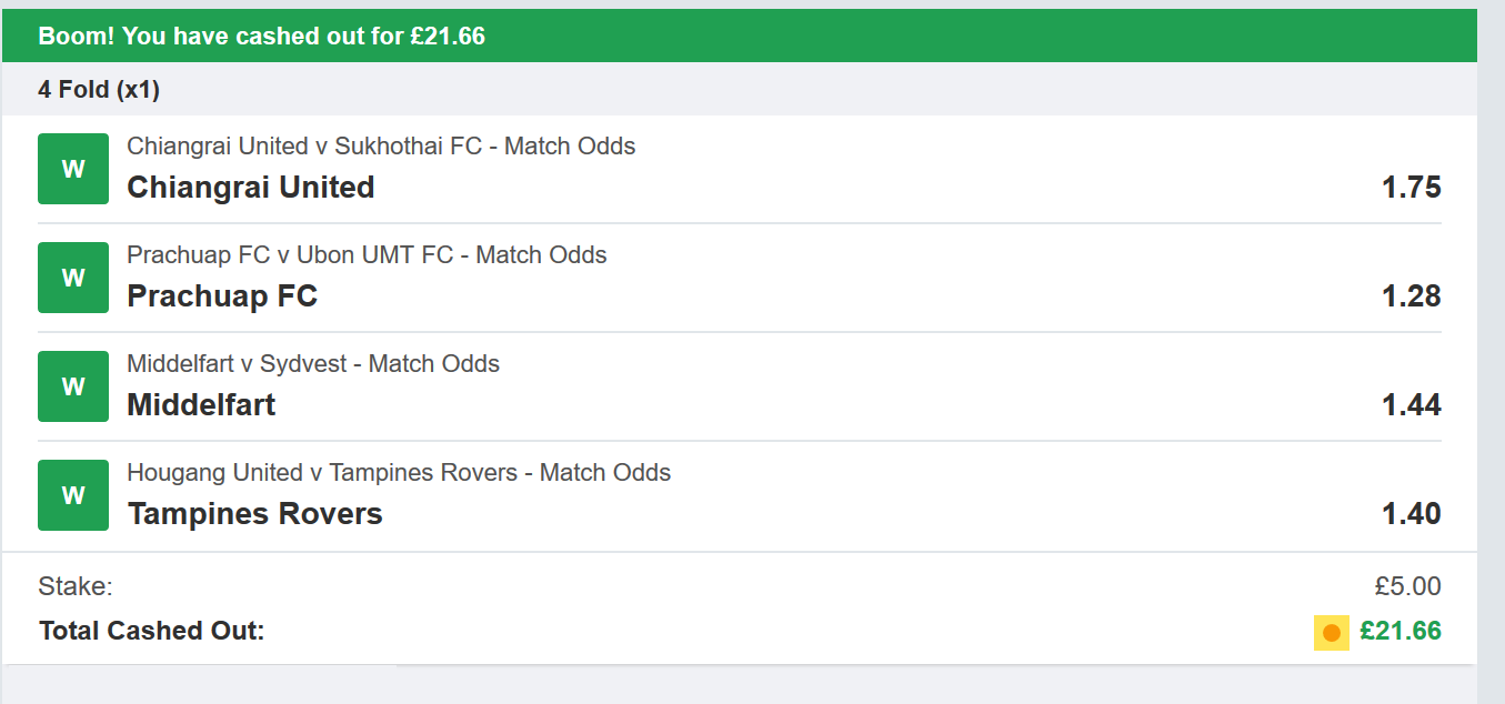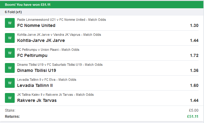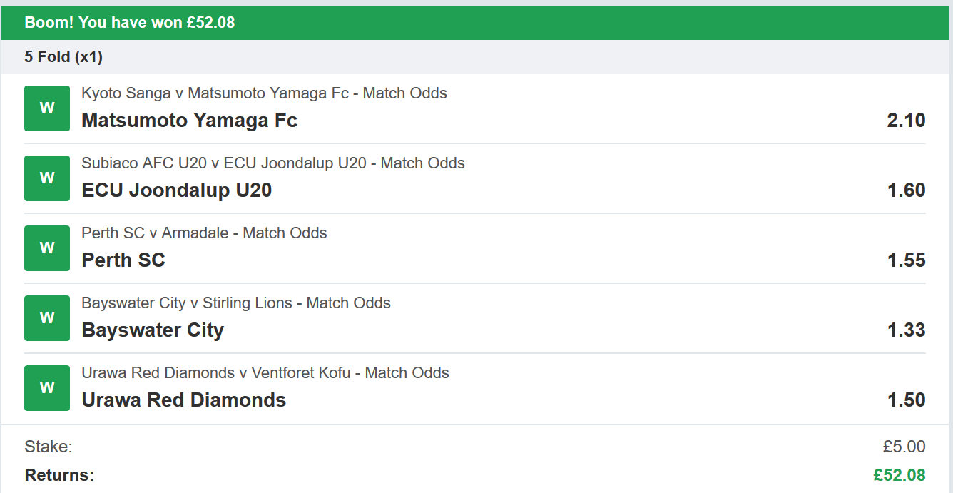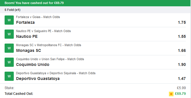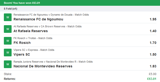 and how about some winning bets sent in by one of our members recently?