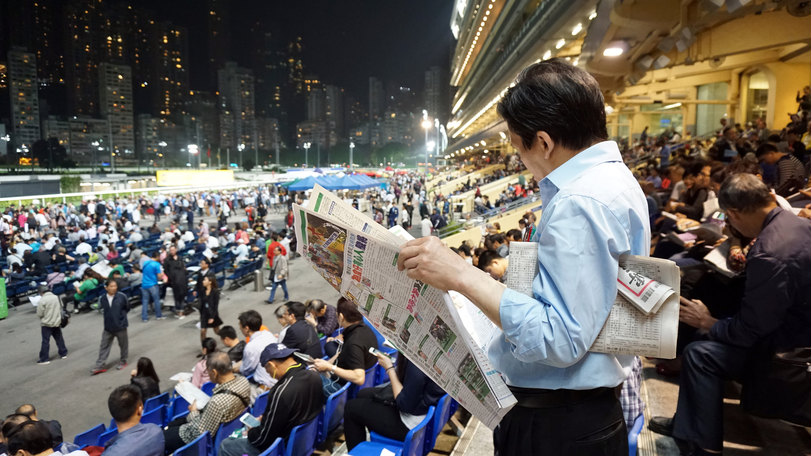Betting is something like a religion in Hong Kong, where citizens bet more than anyone else on Earth. Their cathedral is Happy Valley Racecourse, whose grassy oval track and floodlit stands are ringed at night by one of the sport’s grandest views: neon skyscrapers and neat stacks of high-rises, a constellation of illuminated windows, and beyond them, lush hills silhouetted in darkness.